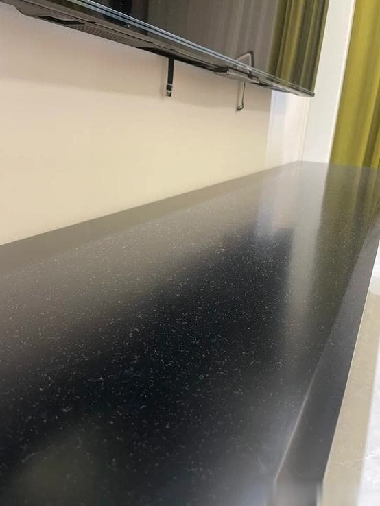 黑色家具表面有灰尘或水垢,很明显,清理后还留水印,清洁麻烦。