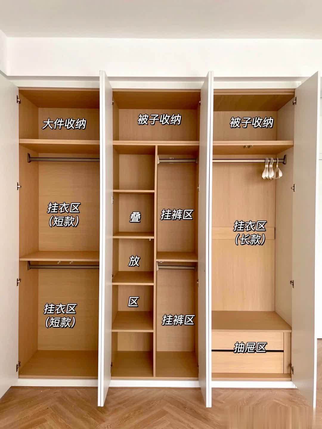 不喜欢叠衣服的话,衣柜设计时少设叠放区,多做挂衣区。