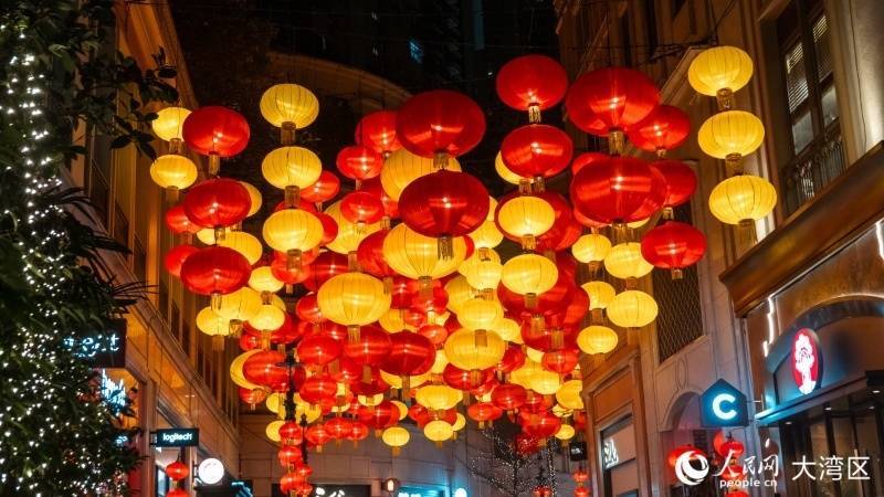 在湾仔利东街,超过800盏新春灯笼高高挂起。人民网 吴宇扬扬摄