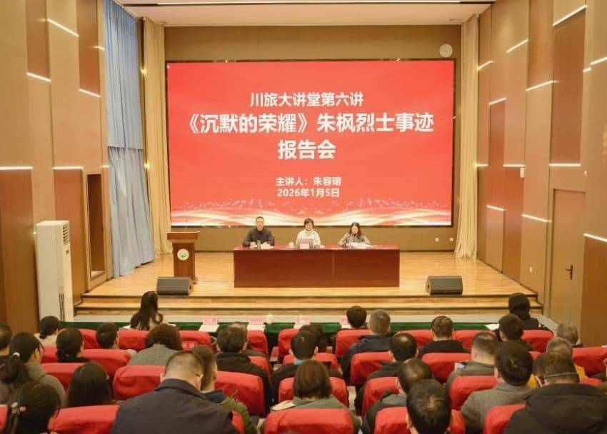 在四川旅游学院,“川旅大讲堂”第六讲聚焦朱枫烈士事迹。学校党委副书记宋亚兰在致辞中指出,朱枫烈士的英雄事迹是鲜活生动的思政教材,希望师生从中汲取信仰力量、扛起时代责任。报告会现场气氛庄重而热烈,交流互动环节中,师生围绕新时代如何传承英烈精神展开深入探讨。